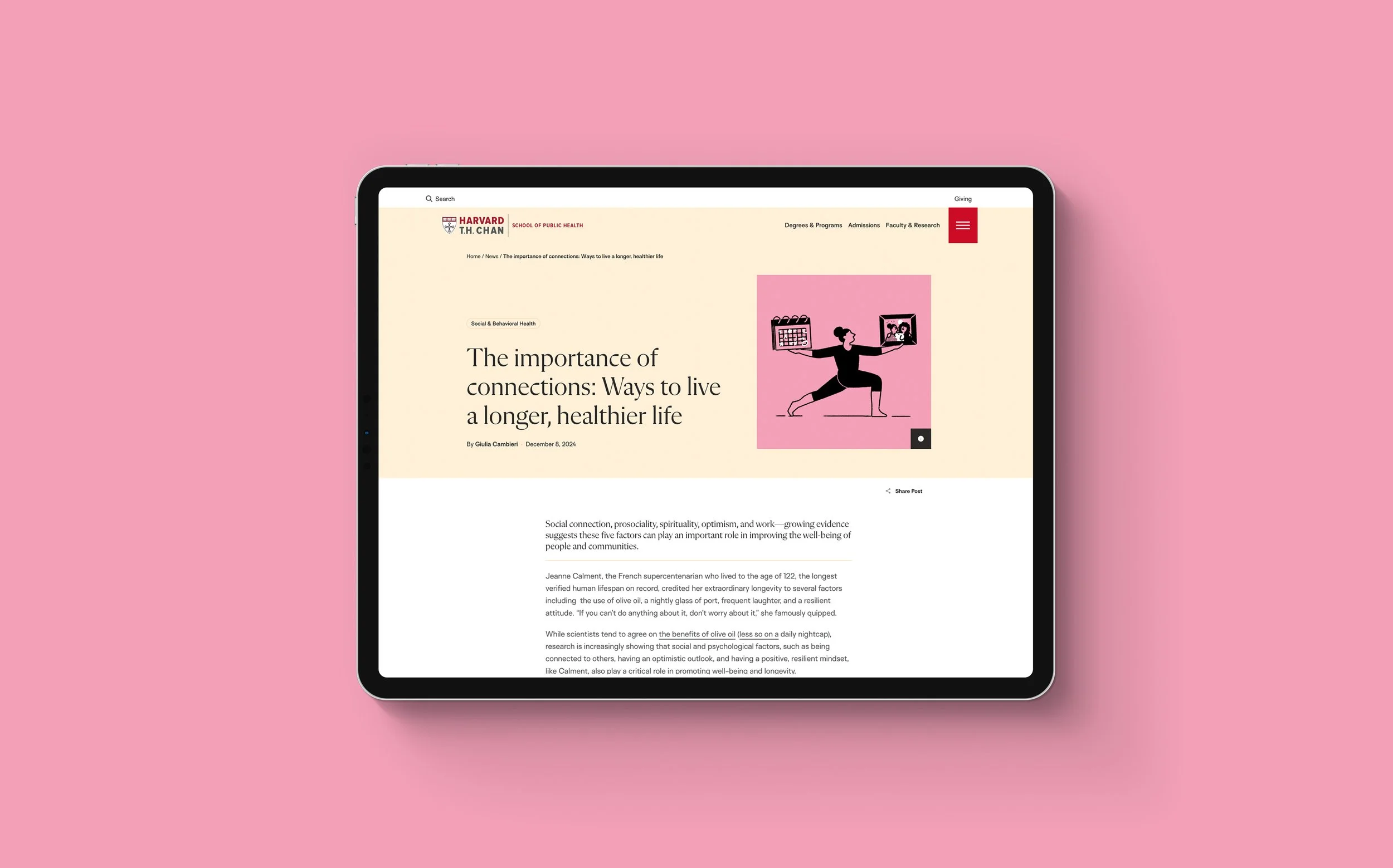 Social connection, prosociality, spirituality, optimism, and work—growing evidence suggests these five factors can play an important role in improving the well-being of people and communities.